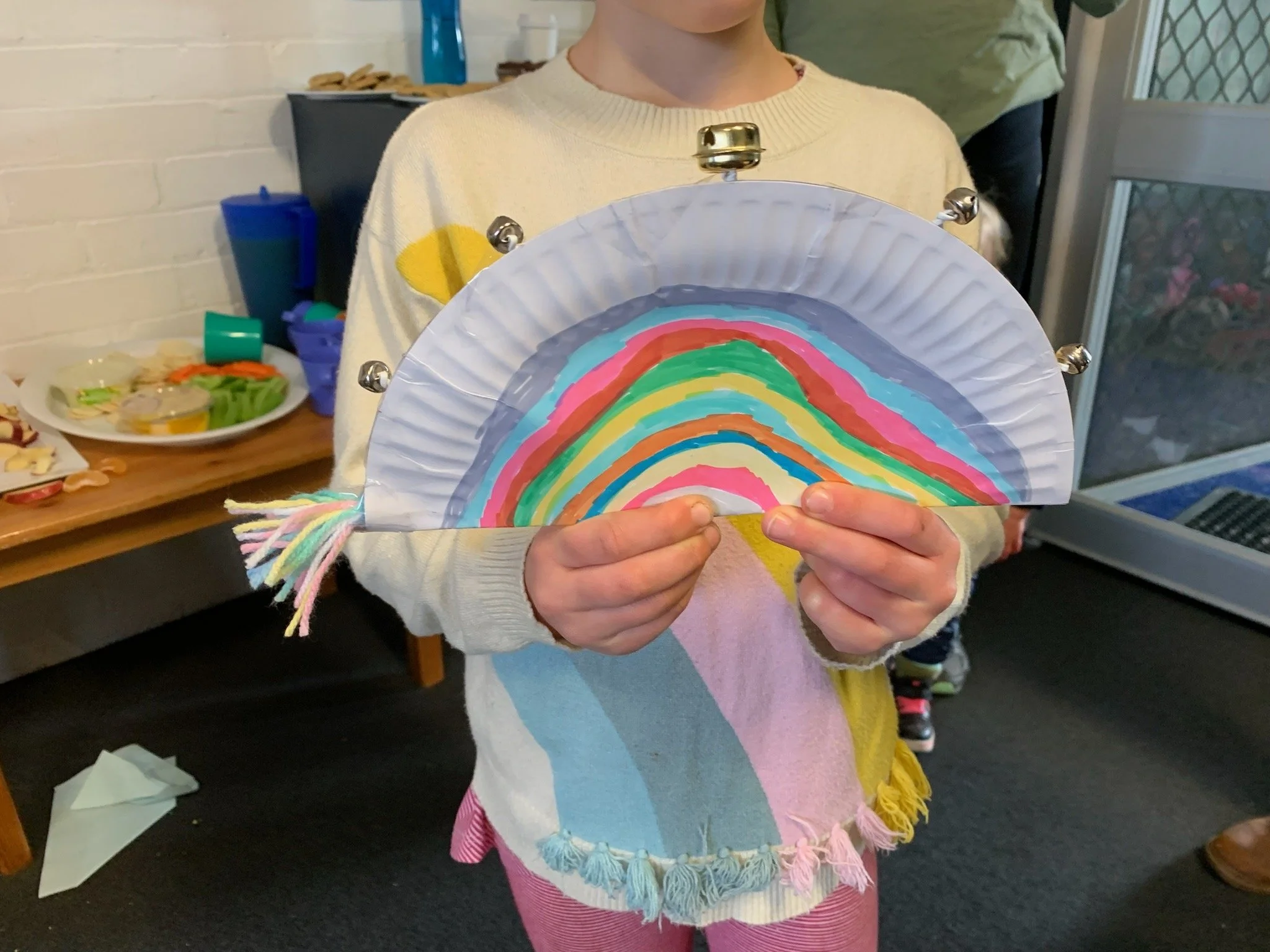 Musical instruments made out of recycled party supplies featuring tambourine, shakers and castanets